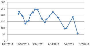 The results of increasing and decreasing humidity can be seen in a long-term review of an SO2 sensor’s span history. For example, in the image below, the wave pattern indicates that the sensor span is low in winter (January-February for the northern hemisphere) and high once when it recovers under warmer temperatures and higher humidity.